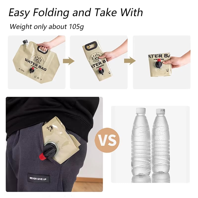 The foldable outdoor water pockets with taps can also be used for washing hands, cleaning fruits, etc. In the open air, this versatility offers you great comfort.